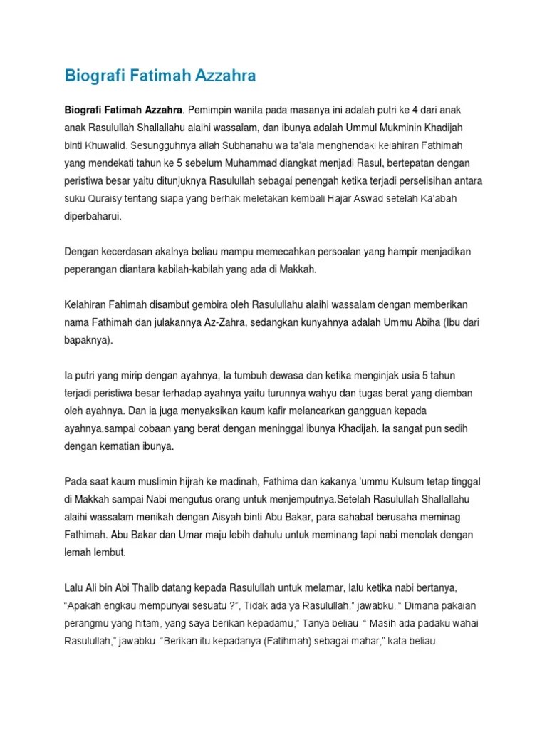 Biodata Fatimah Az Zahra / Pelajaran 23 3 Saidatina Fatimah Ratu Syurga Membalik Buku Halaman 1 8 Anyflip